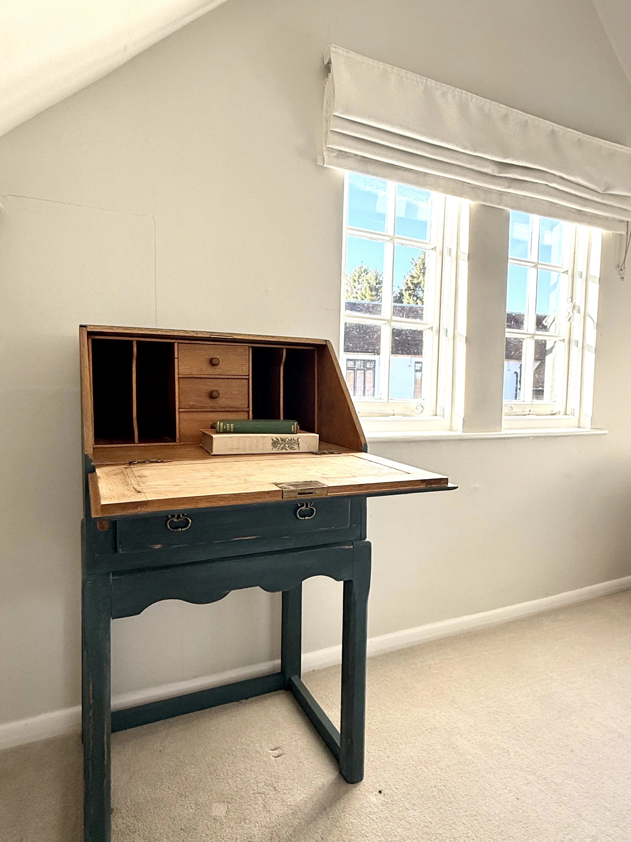 This quiet little corner of the Writer’s Cottage offer a cozy spot for writing, reading, and sleeping soundly in our luxury linens.