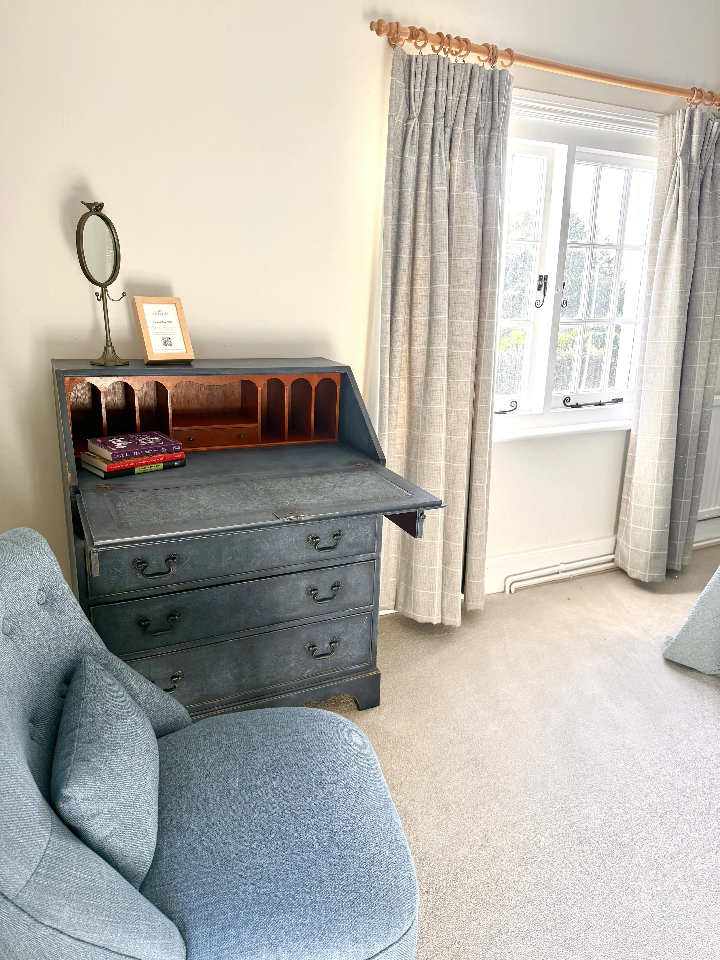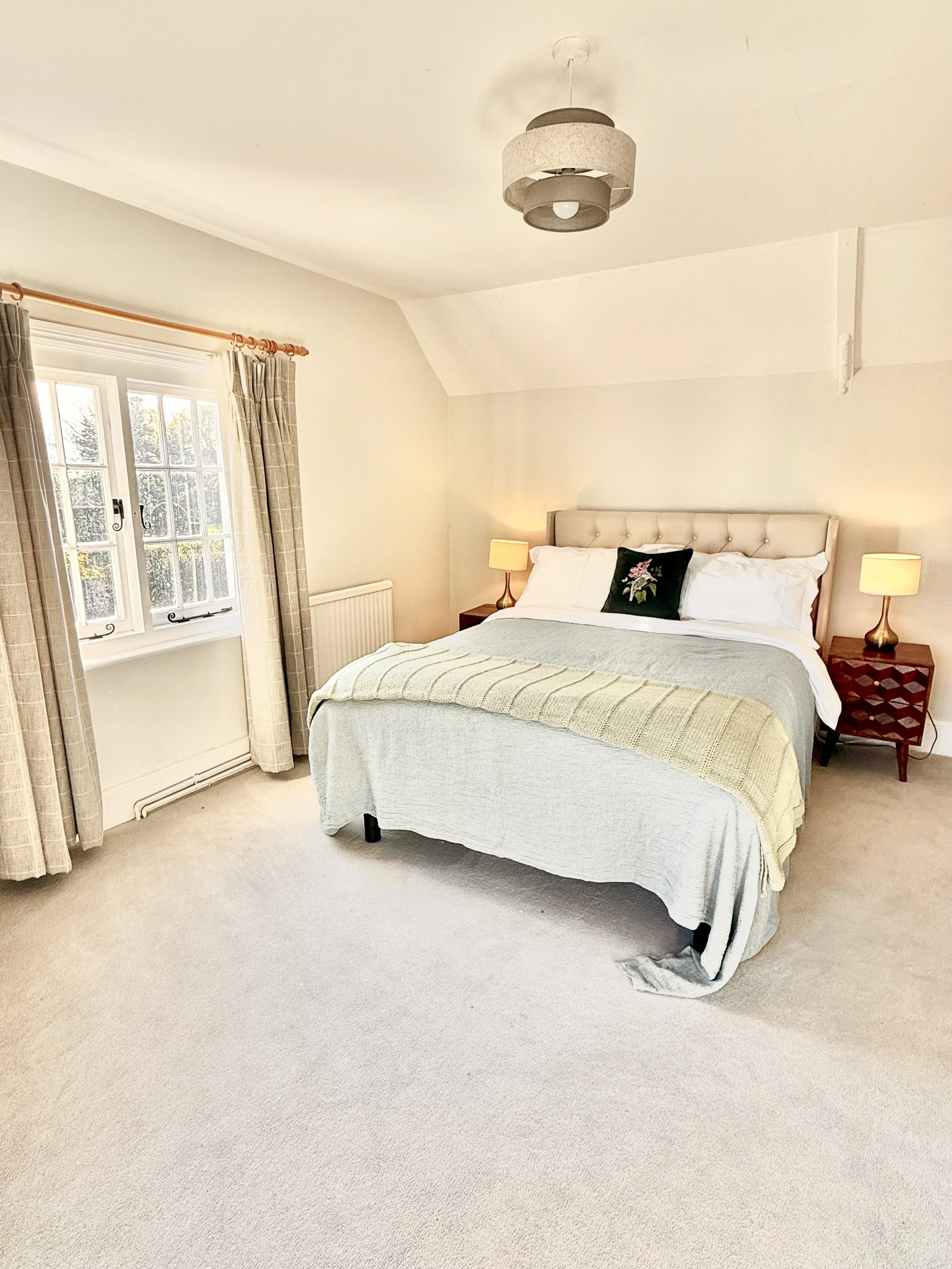 With stunning views of the Parterre and Potager Gardens, this generously sized bedroom offers luxury in a sun-soaked corner of the cottage